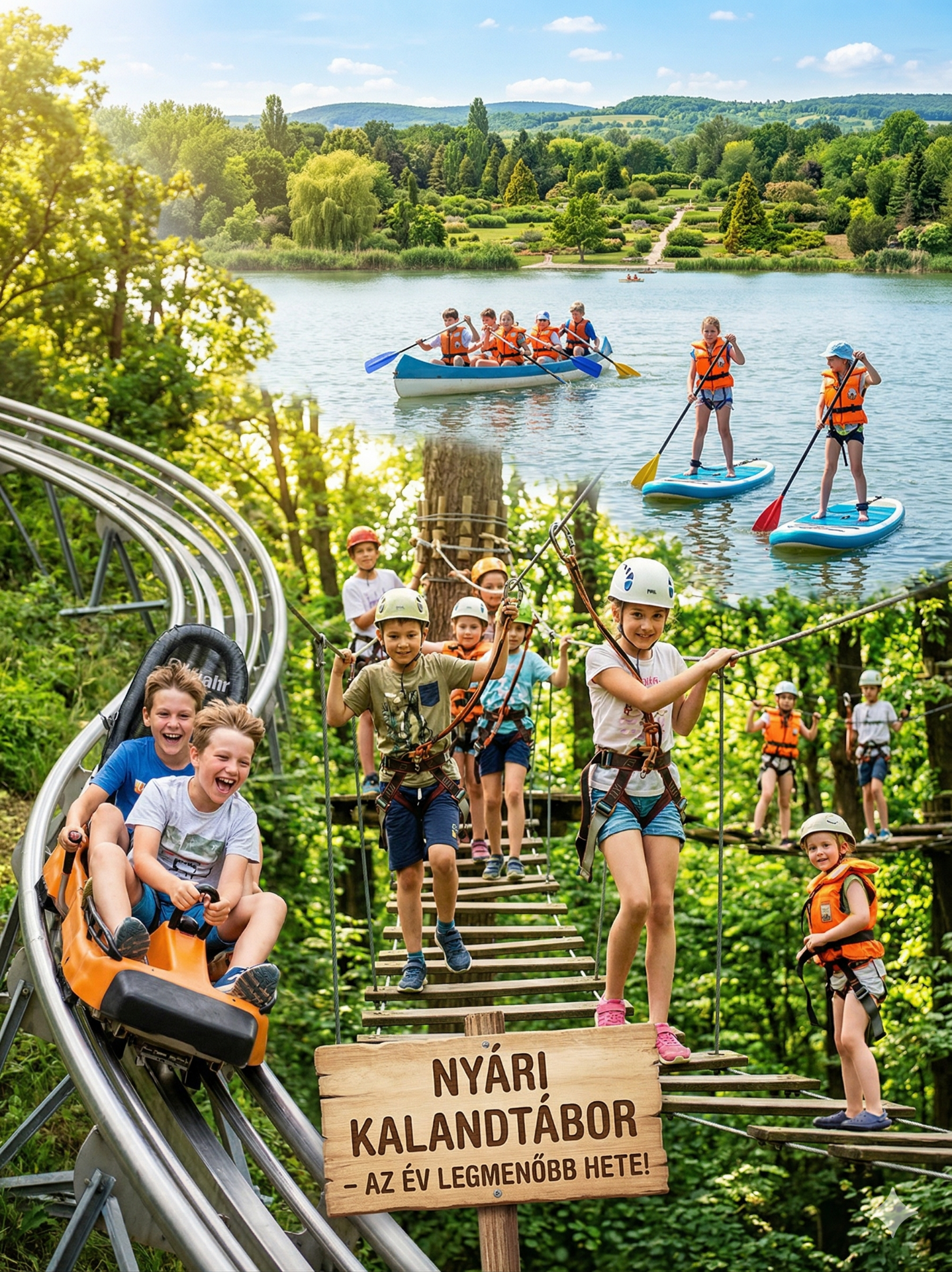 Hív a nyár, és idén valami igazán különlegessel készültünk nektek, egy olyan kalanddal, ami után garantáltan sikítani fogtok a boldogságtól! Képzeljétek el, hogy a sűrű lombkoronák között, mint igazi őserdei hősök, kúszhattok-mászhattok a magasban, és próbára tehetitek az ügyességeteket a legkülönfélébb akadályokon!
